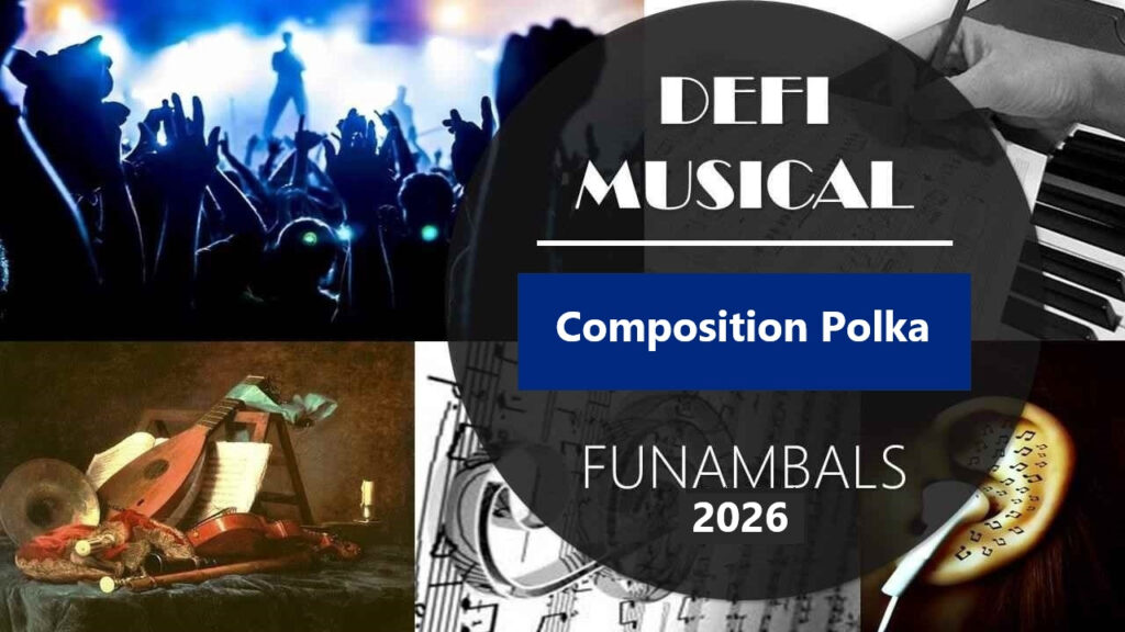 Ouvert à tous et à tout instrument. Cette année il s’agit de composer une POLKA , spécialement pour l’occasion (originale). Puis l’enregistrer en solo et l’envoyer par mail avant le 12 avril 2026 au plus tard à l’adresse suivante: defi.funambal@gmail.com.