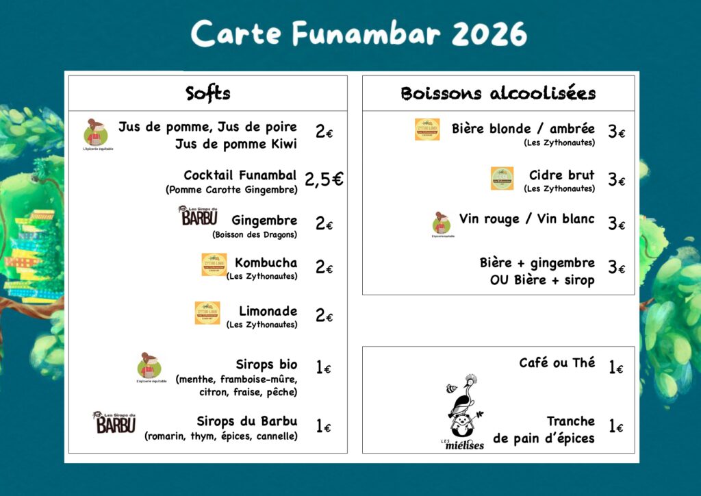 Lors des bals : notre Funambar et ses bénévoles seront là pour étancher votre soif avec des boissons bio et choisies avec soin.